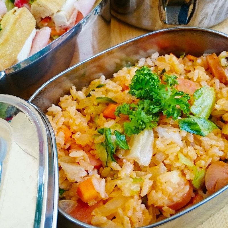 ステンレス製のランチボックスはスタイリッシュなだけじゃなく臭い移りや色移りも少なく、油汚れもすぐ落ちるのが魅力。