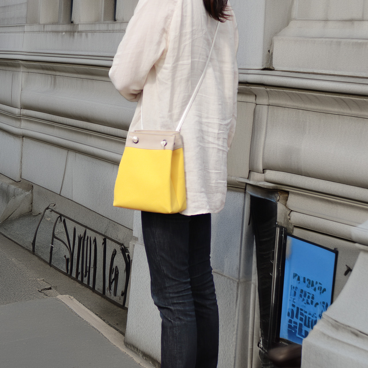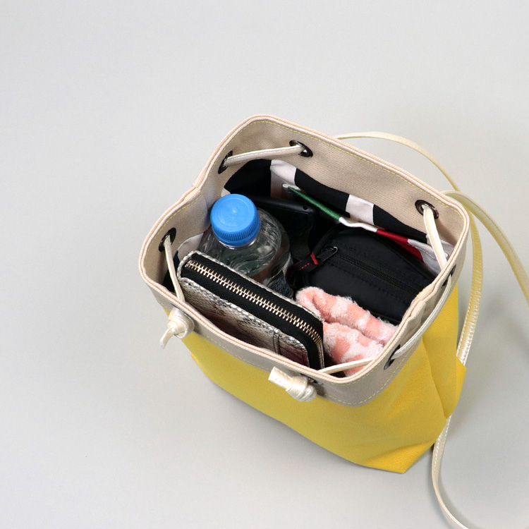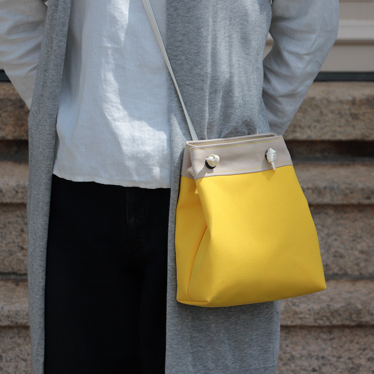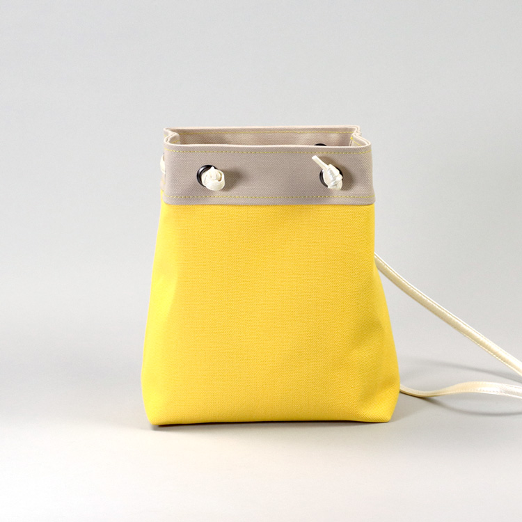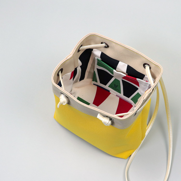 ピクニックショルダー 北欧生地×富士金梅のポシェット イエロー×ベージュ 8号帆布ショルダーミニバッグ